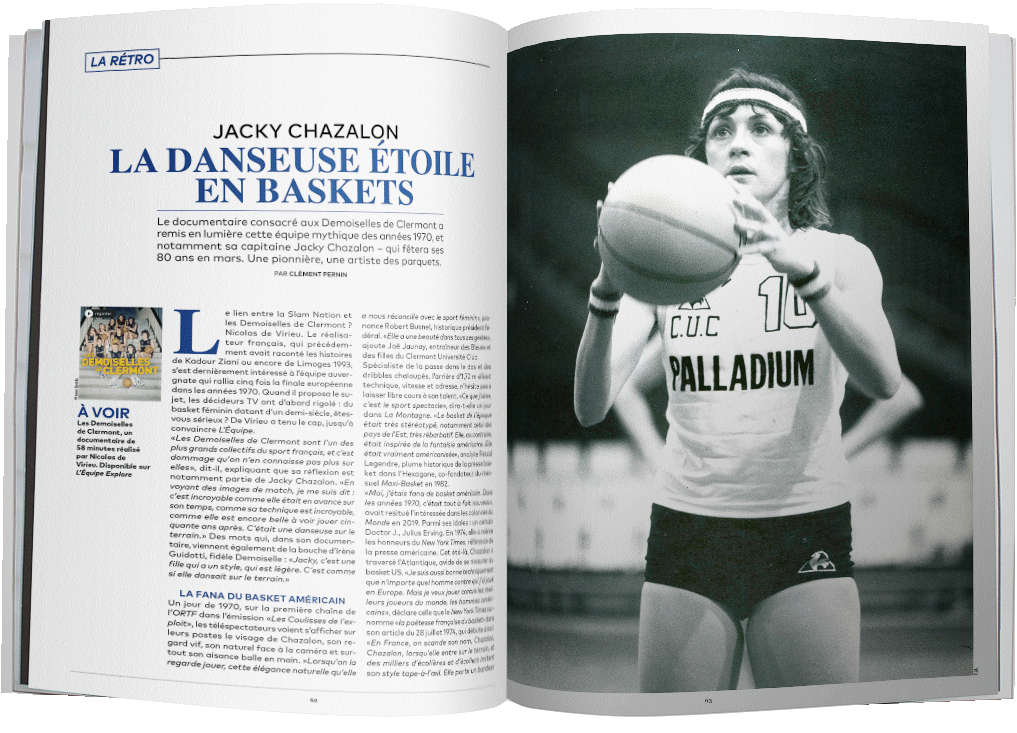 Rétro : Jacky Chazalon, la danseuse étoile en baskets. À l’occasion de la sortie du documentaire « Les Demoiselles de Clermont » (signé Nicolas de Virieu), et alors qu’elle s’apprête à fêter son 80e anniversaire, retour sur le parcours de cette joueuse en avance sur son temps.